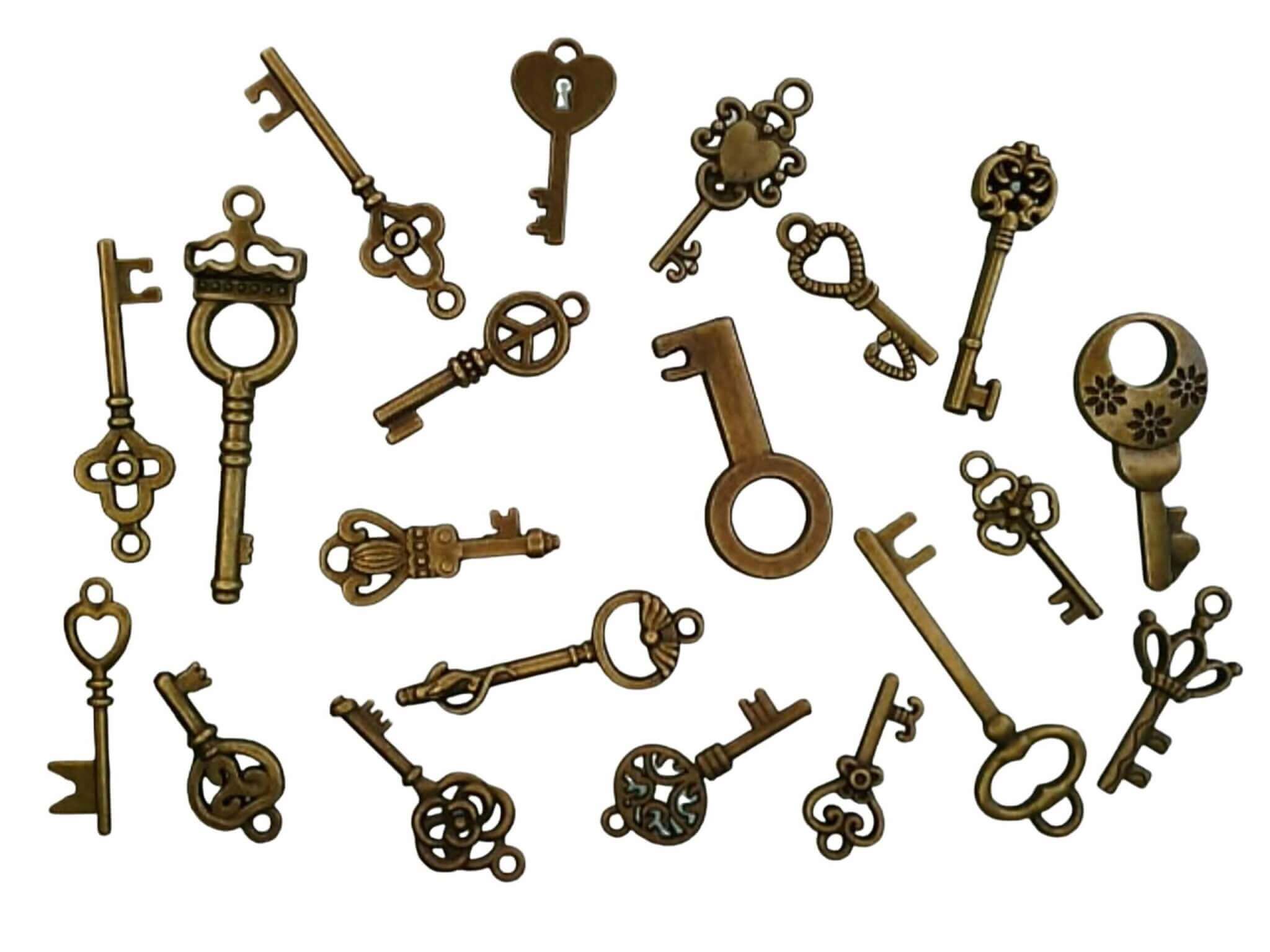 25 Piece Bronze Vintage Skeleton Keys .05-2″ Mix
