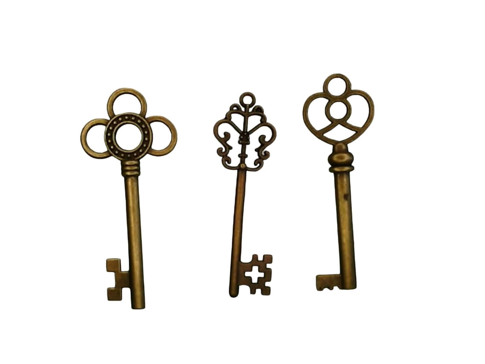 6 Piece Bronze Vintage Skeleton Keys 2″ Mix