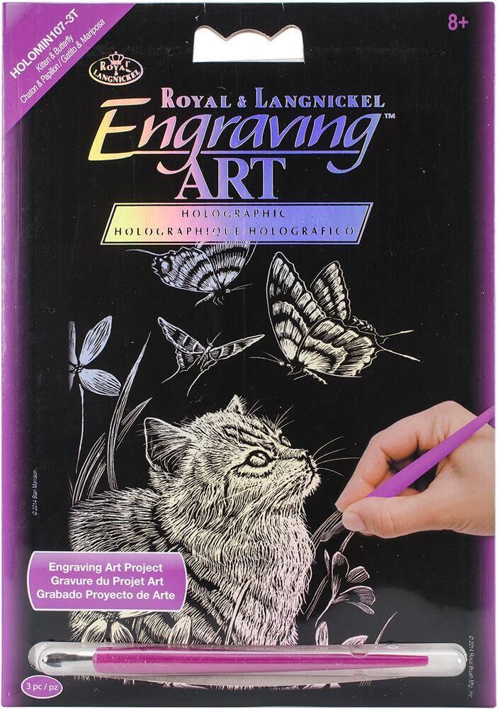 Kitten & Butterfly Holographic Foil Engraving Art Mini Kit 5″X7″